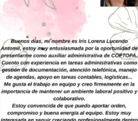 Nueva incorporación al equipo COPTOPA: Administrativa